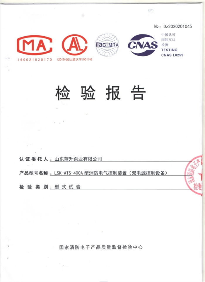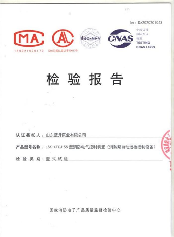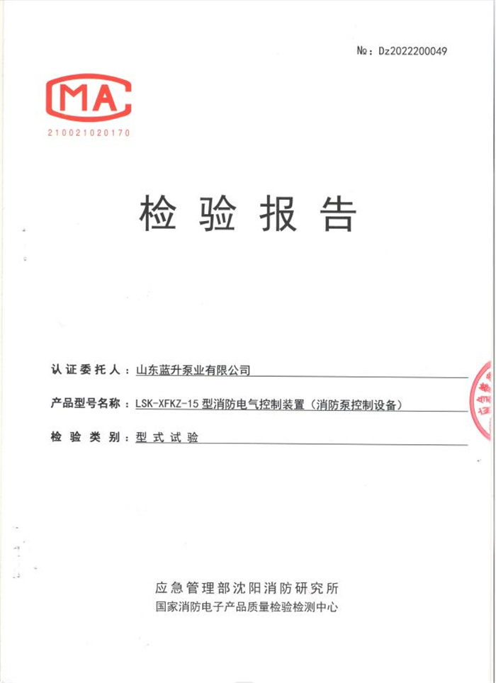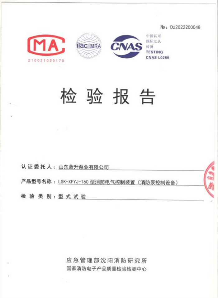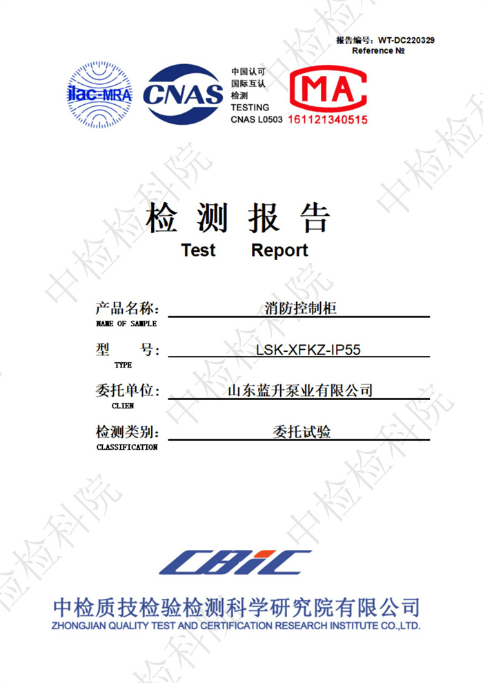 藍(lán)升離心泵檢驗報告
