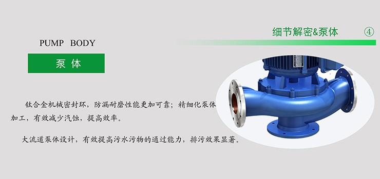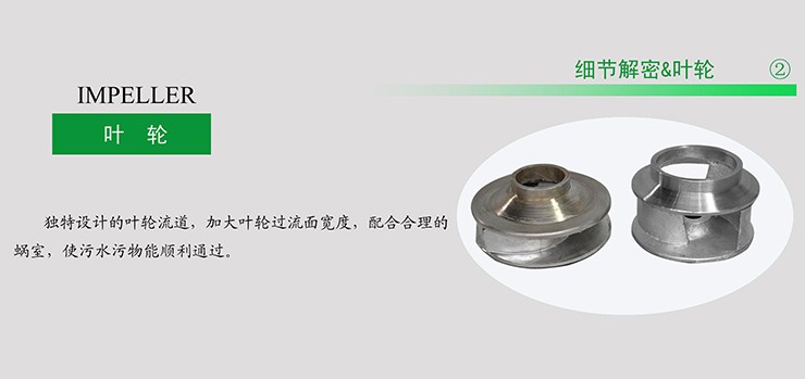 3.采用大流遒抗堵塞水力部件設(shè)計(jì),太大提高污物通過(guò)能力,能有效地通過(guò)泵口徑的5倍纖維物質(zhì)和唾?gòu)綖楸每趶郊s50%的固體顆粒。