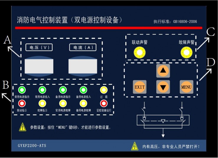 LSK-ATS 型消防電氣控制裝置(雙電源控制柜),是為了滿足消防電氣控制裝置(雙電源控制設(shè)備),符合GB16806-2006標(biāo)準(zhǔn)設(shè)計的一款產(chǎn)品,用于雙電源控制設(shè)備中的邏輯運(yùn)算、自動遠(yuǎn)程信號處理、繼電器驅(qū)動、電壓電流顯示及負(fù)載故障保護(hù)。